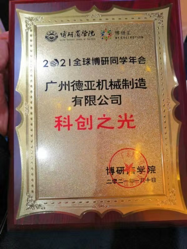 1月10日,“2021博研同學(xué)年會(huì)”授予10家具有行業(yè)代表性且具有科研成果影響力的企業(yè)“科創(chuàng)之光”獎(jiǎng)牌,廣州德亞機(jī)械制造有限公司得此殊榮,并獲院士授牌。