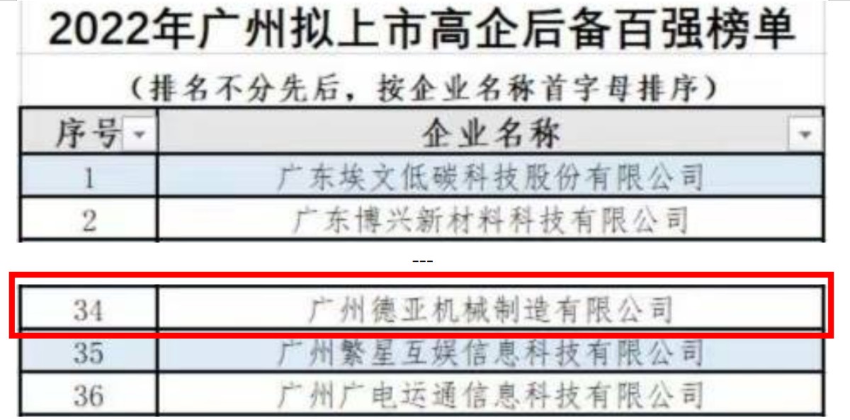 喜訊!德亞榮登“2022年廣州擬上市高企后備百?gòu)?qiáng)榜單”