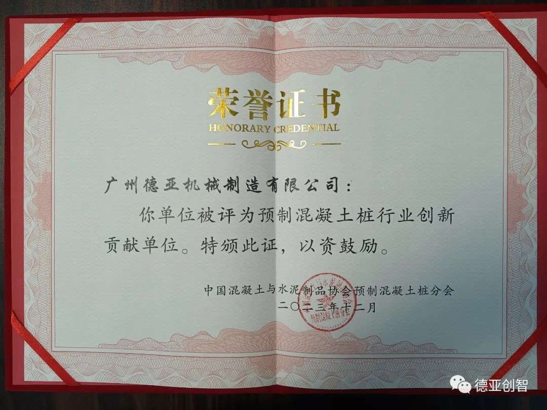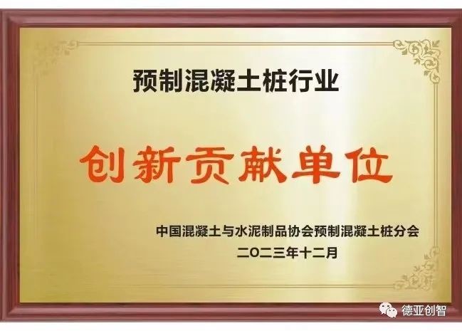 感謝中國水泥制品協(xié)會(huì)預(yù)制混凝土樁分會(huì)及業(yè)界對(duì)“德亞創(chuàng)智”的認(rèn)可,德亞創(chuàng)智將保持初心,砥礪奮進(jìn)!繼續(xù)堅(jiān)持以創(chuàng)新為主旋律,為PHC管樁行業(yè)的發(fā)展鍛造新一輪騰飛的引擎,努力推動(dòng)預(yù)制混凝土樁行業(yè)高質(zhì)量發(fā)展!