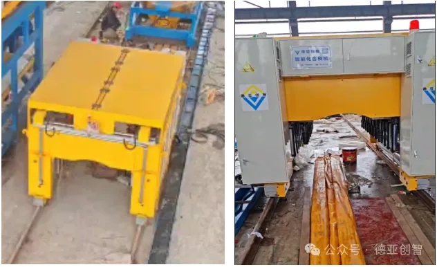 4.1 跟隨合/拆模機(jī),特點(diǎn):合/拆模機(jī)跟隨管模同步行走時(shí)合模拆模作業(yè),管模不用停止,生產(chǎn)效率高,能滿足單線模式生產(chǎn)節(jié)拍,投資成本低,目前為新工廠首選;